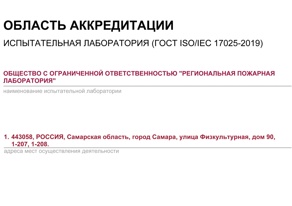 ООО "Региональная пожарная лаборатория", предоставляет физическим и юридическим лицам услуги по контролю качества огнезащитой обработки, проводит испытания пожарных лестниц и ограждений кровель крыш на прочность и на соответствие ГОСТ.